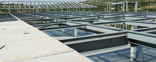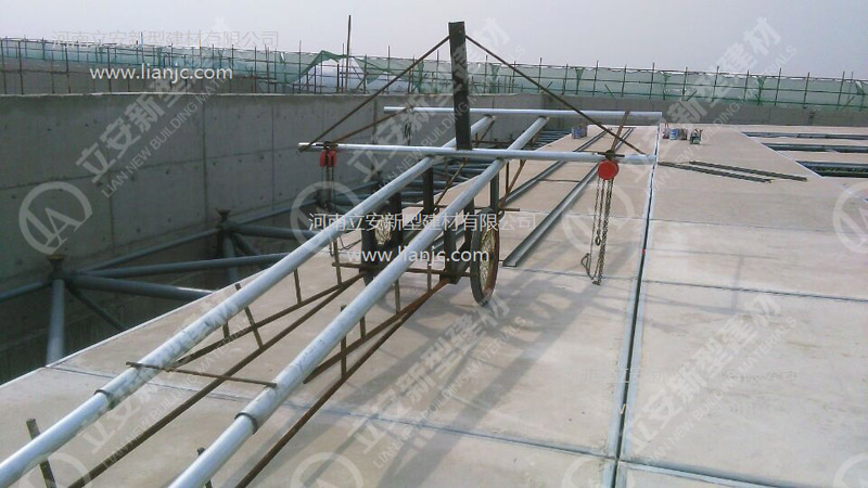 鋼骨架輕型板適用于輸煤棧橋、公共民用等建筑圍護(hù)屋面、樓面、墻面.鋼骨架輕型板由輕型鋼骨架、冷拔鋼絲網(wǎng)、改性水泥珍珠巖復(fù)合芯材(專有技術(shù))、復(fù)合抗?jié)B耐磨涂層(專有技術(shù))組成.鋼骨架輕型板集輕質(zhì)、承重、節(jié)能、防火、隔聲、泄爆、抗震等功能于一體,既保持了傳統(tǒng)鋼筋混凝土構(gòu)件安全度高、使用壽命長的優(yōu)點(diǎn),又滿足了現(xiàn)代建筑對輕質(zhì)、節(jié)能、環(huán)保的要求。
